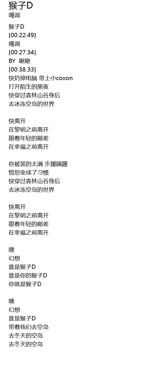 | [02:10.77] | nǐ jiù shì hóu zi D |