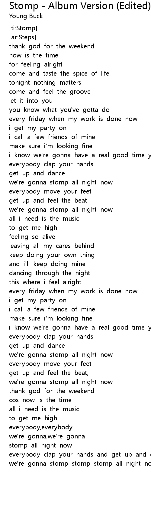 | [02:59.640] | we' re gonna stomp stomp stomp all night now |