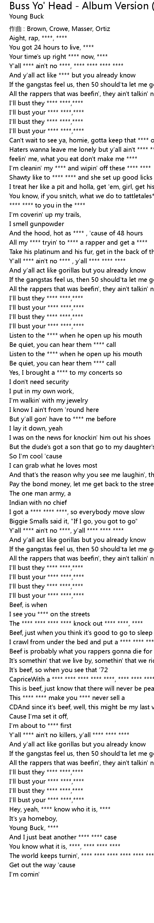 | Song | Buss Yo' Head - Album Version (Explicit) |