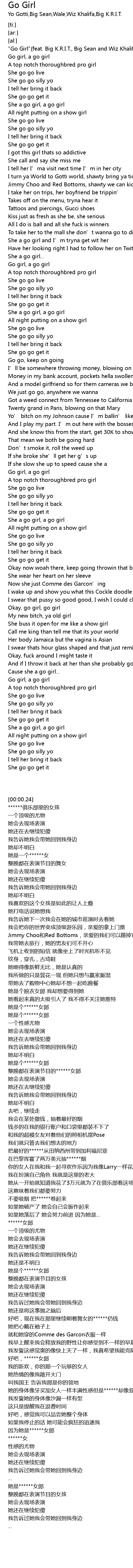 | [00:00.24] | "Go Girl"(feat. Big K.R.I.T., Big Sean and Wiz Khalifa) |
