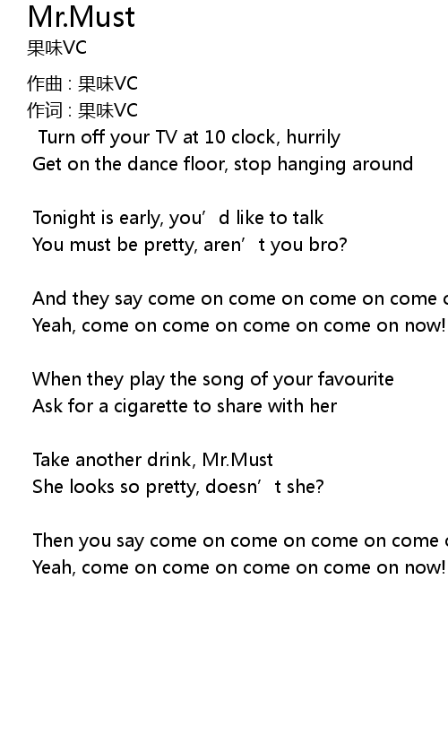 | Then you say come on come on come on come on come on now! | |
