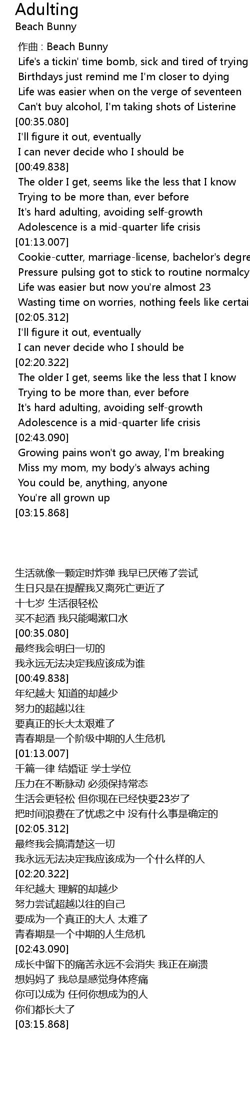 | [02:37.912] | Adolescence is a mid-quarter life crisis |