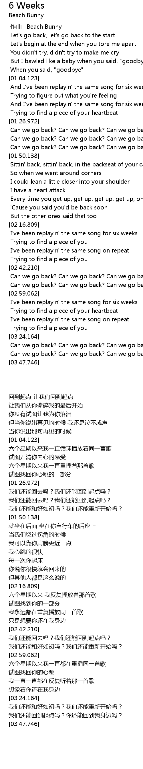 | [02:22.999] | I've been replayin' the same song for six weeks |