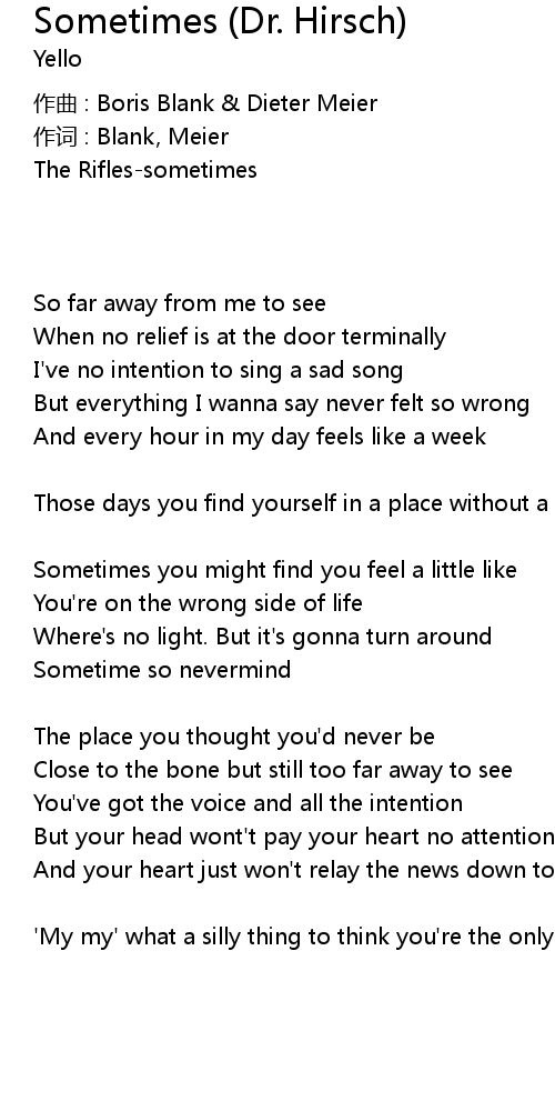 | Song | Sometimes (Dr. Hirsch) |