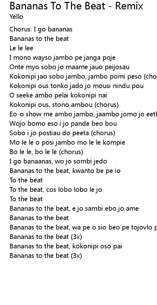 Bananas to the beat, wa pe o sio beo pe tojovlo peo |