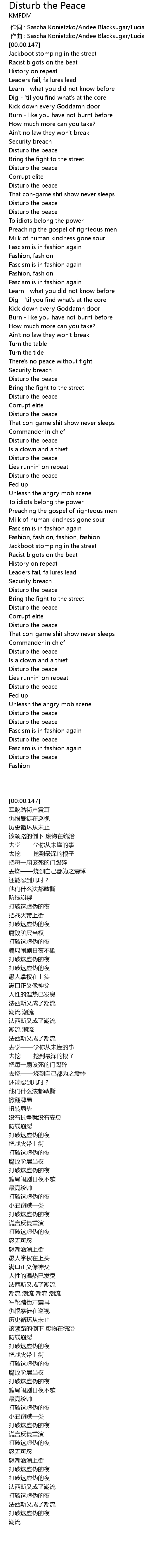 | [01:35.380] | Disturb the peace |