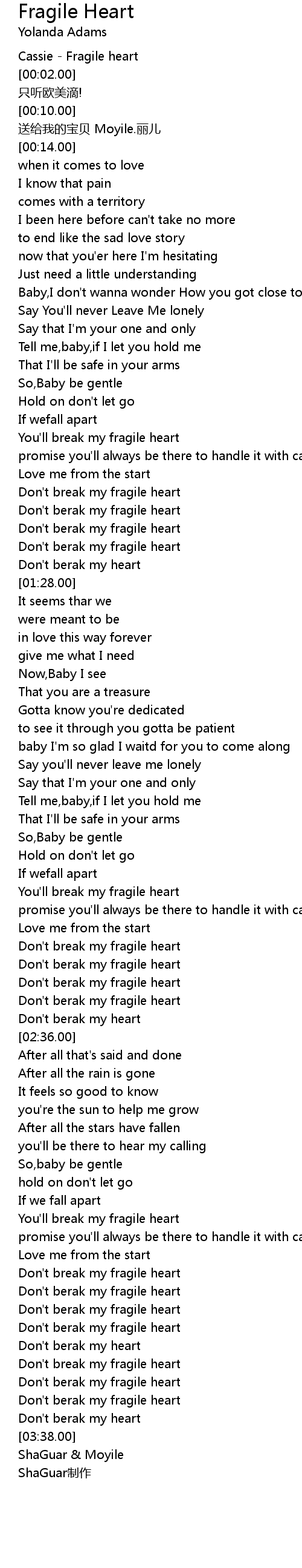 | [02:32.35] | Don't berak my fragile heart |