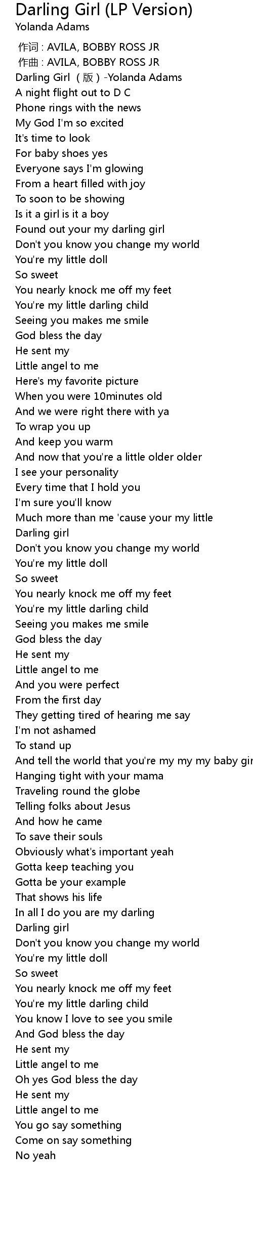 | [00:00.00] | Darling Girl (版)-Yolanda Adams |