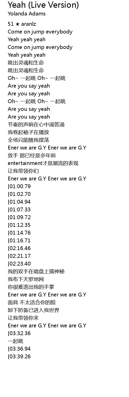 | [03:46.14][03:36.94][03:27.70][03:18.56][03:09.28][03:00.08] | Are you say yeah |