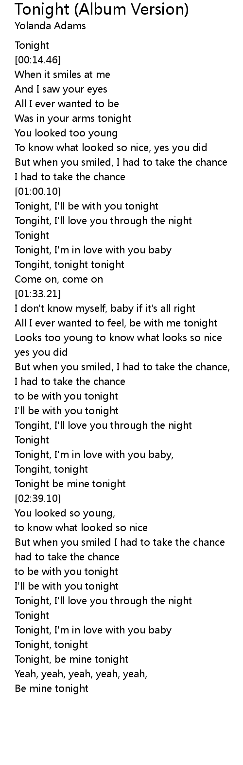 Tongiht, tonight tonight |