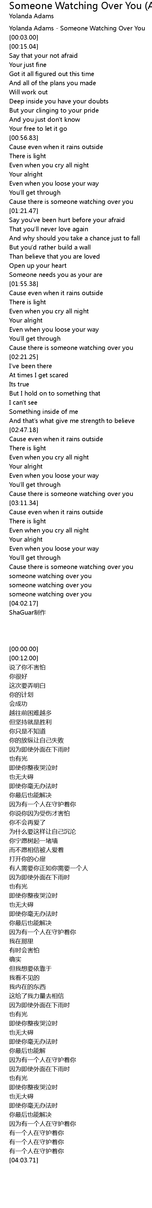 | [00:00.00] | Yolanda Adams - Someone Watching Over You |