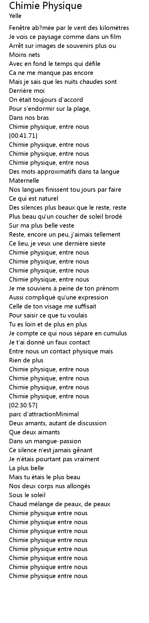 | [03:12.31] | Chaud mé lange de peaux, de peaux |