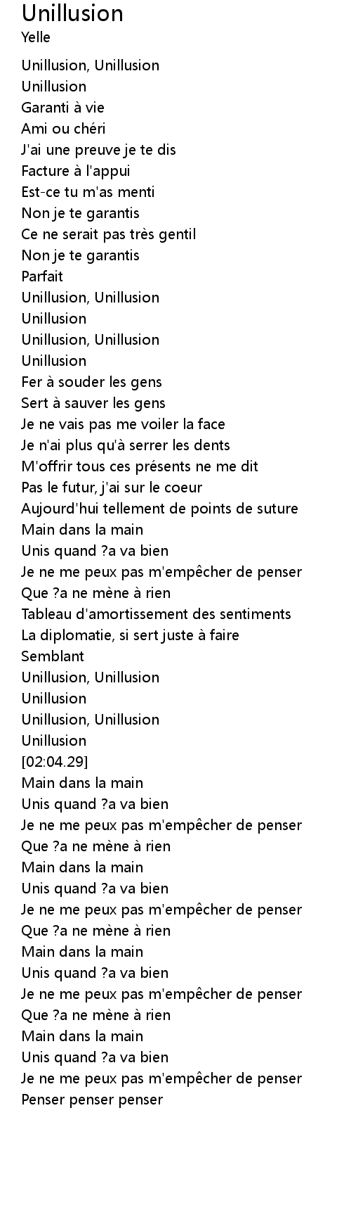 | [02:47.81] | Je ne me peux pas m' emp cher de penser |