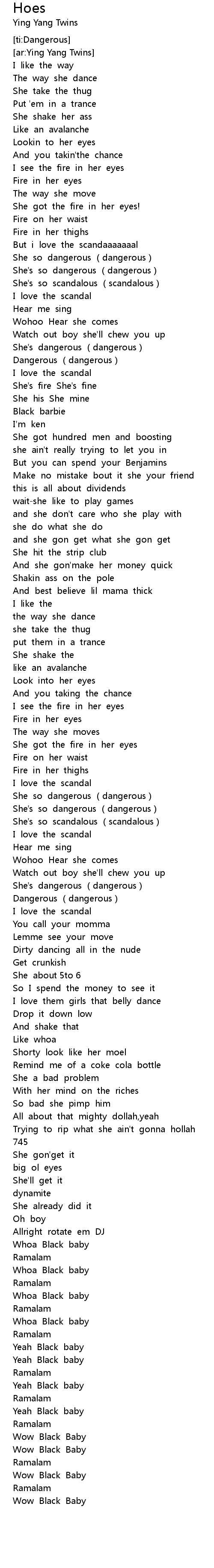 | [00:56.74] | She so dangerous dangerous |