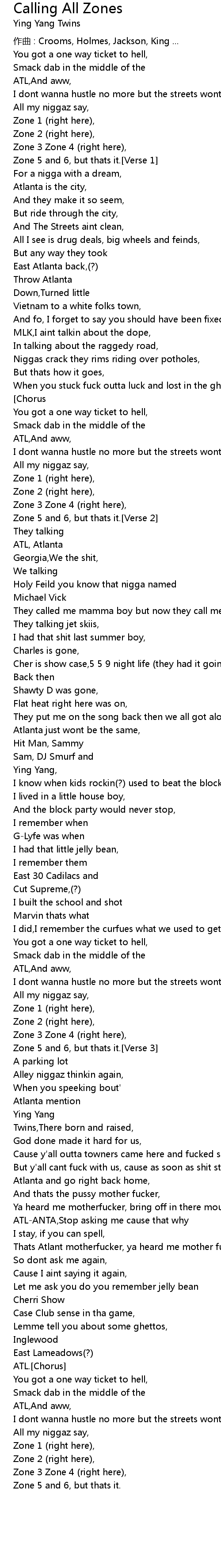 | Zone 5 and 6, but thats it.[Verse 1] | |