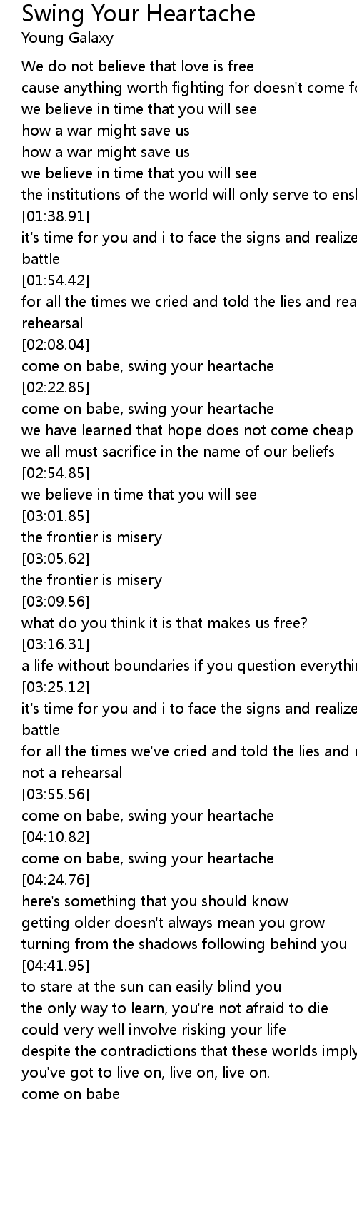 come on babe, swing your heartache |