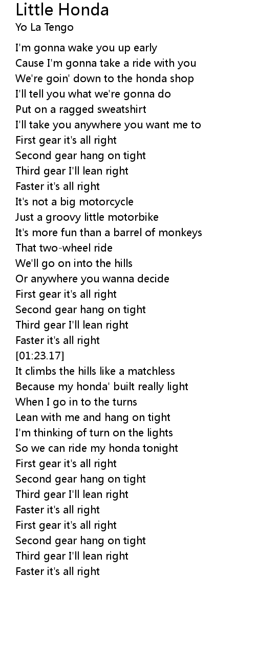 So we can ride my honda tonight |