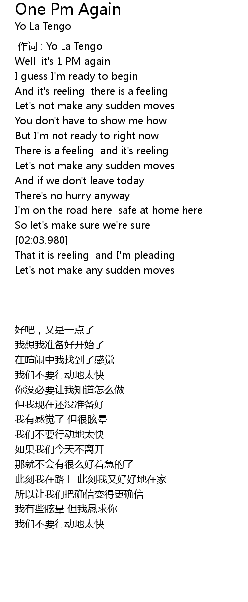 | [00:00.00] | zuò cí : Yo La Tengo |