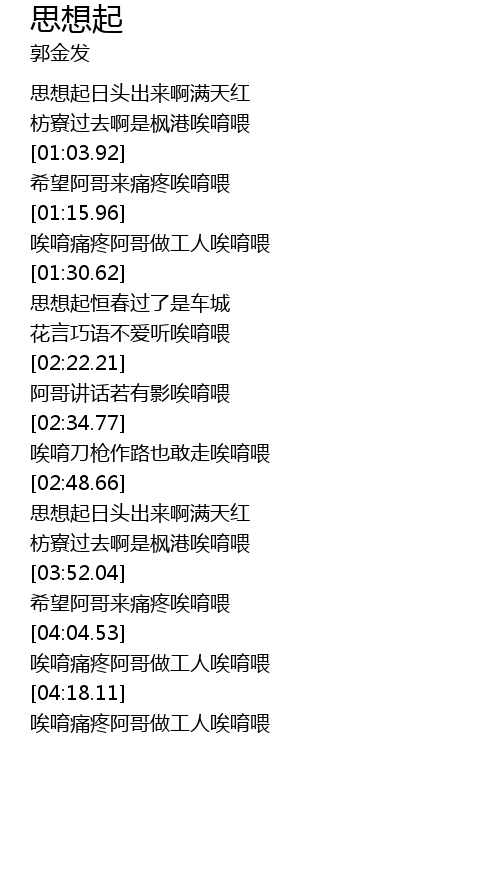 | [03:52.74] | 希望阿哥来痛疼唉唷喂 |