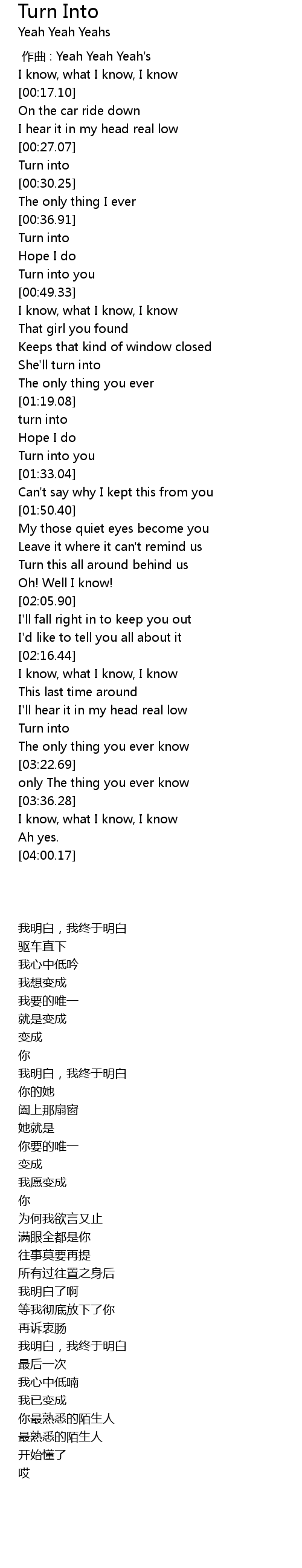 | [03:13.08] | Turn into |