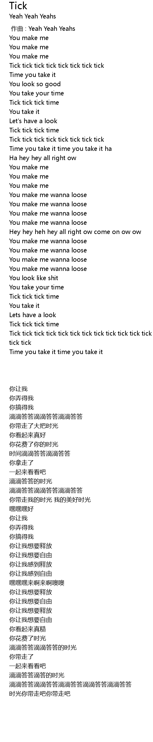 | [00:05.70] | Tick tick tick tick tick tick tick tick |