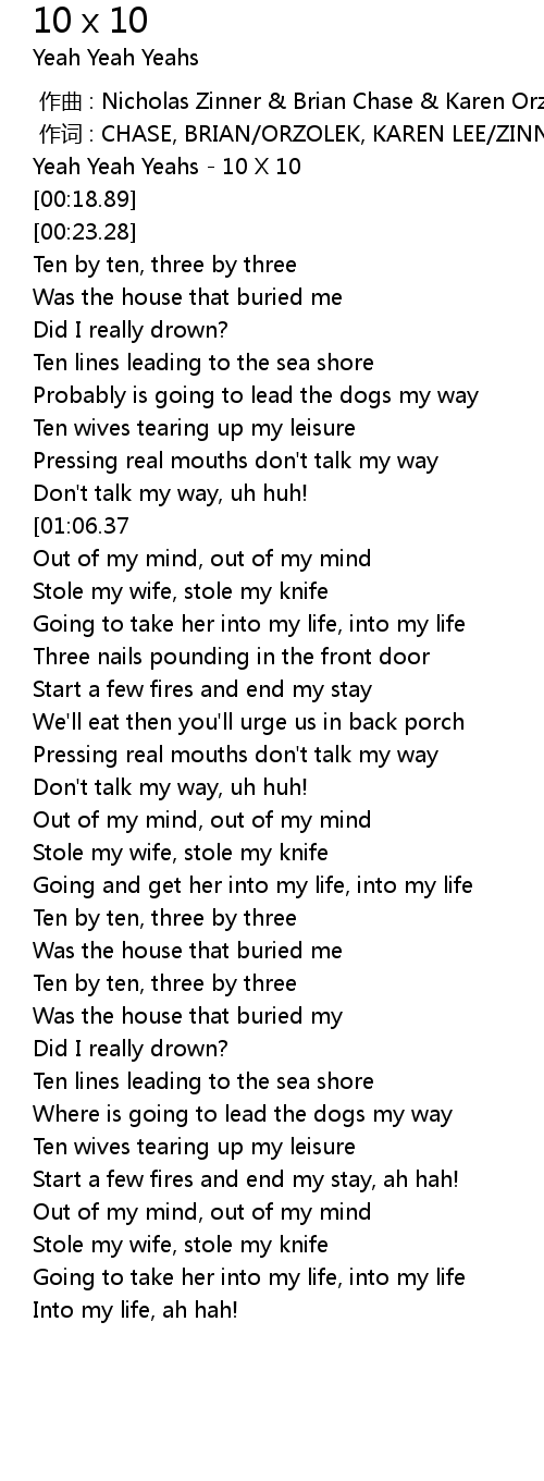 | [00:14.90] | Yeah Yeah Yeahs 10 X 10 |