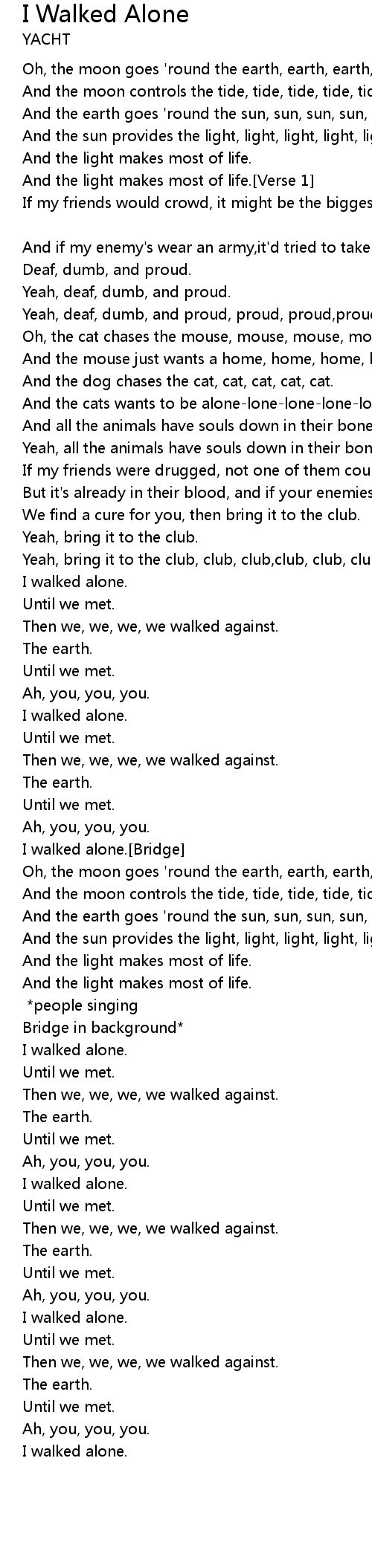 I walked alone.[Bridge] |