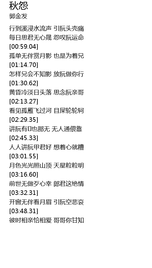 | [00:44.47] | 每日思君无心晟 怨叹阮运命 |