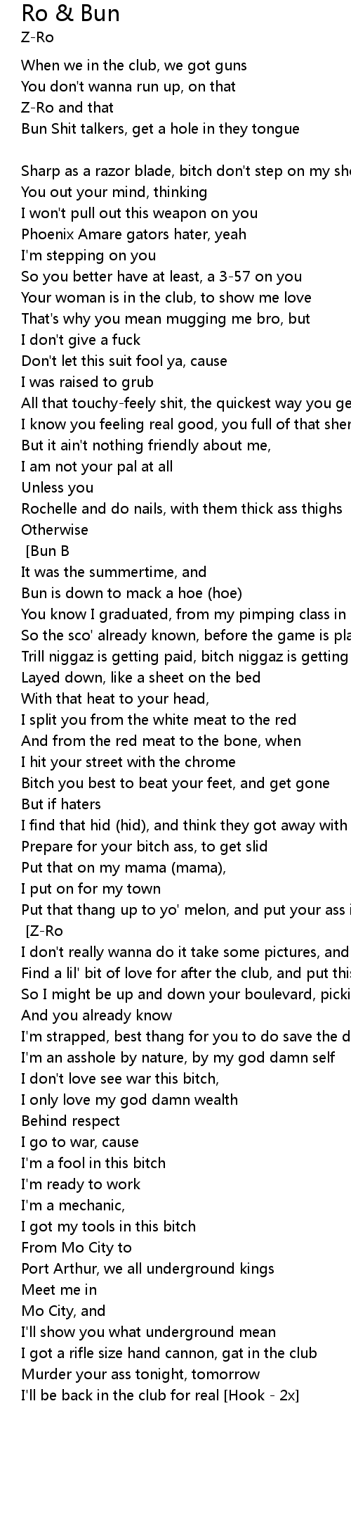 | I'ma leave a cereal bowl hole, in y'all bitch ass guys [Hook - 2x] [Bun B] | |