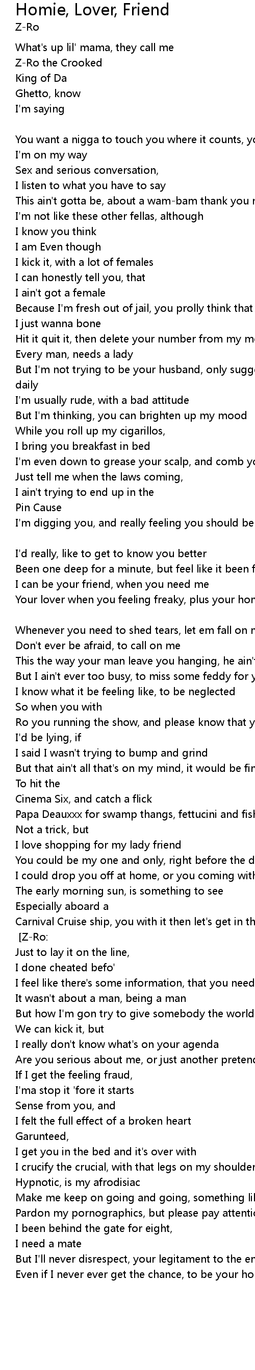 Now this is how it is, to be my only homie lover friend [Hook x2] [Z-Ro:] |