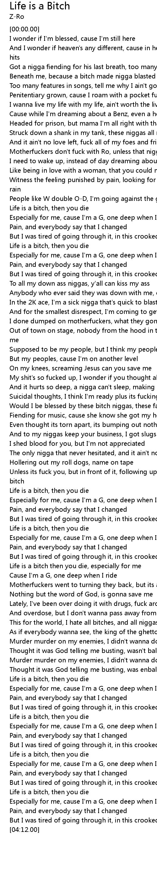 | [01:26.73] | To all my down ass niggas, y'all can kiss my ass |