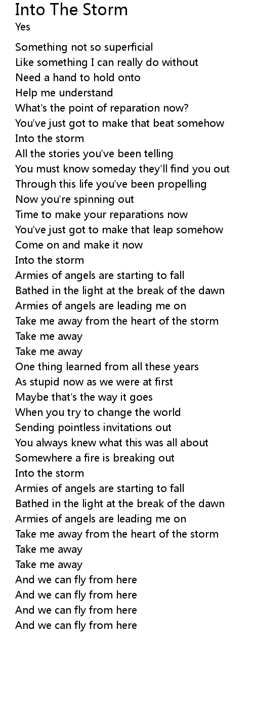 Take me away from the heart of the storm |