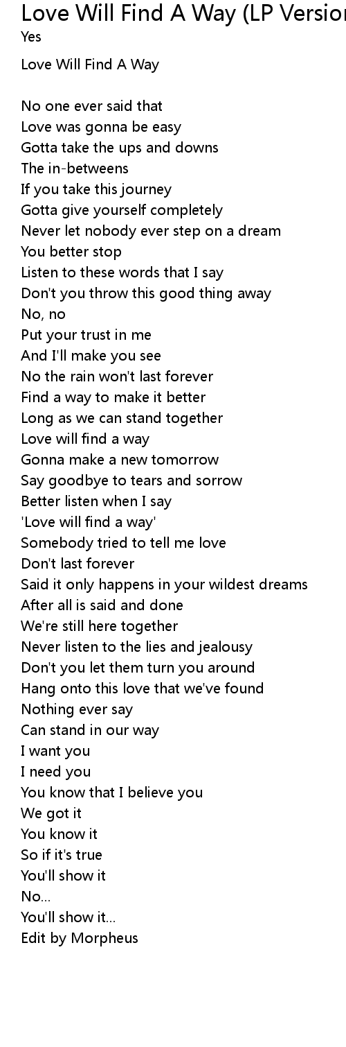 Love Will Find A Way |