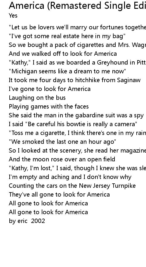 And we walked off to look for America |