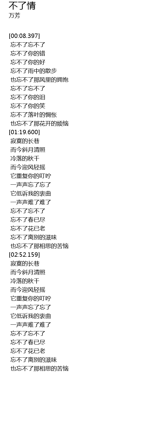 | [00:47.790] | wàng bù liǎo wàng bù liǎo |