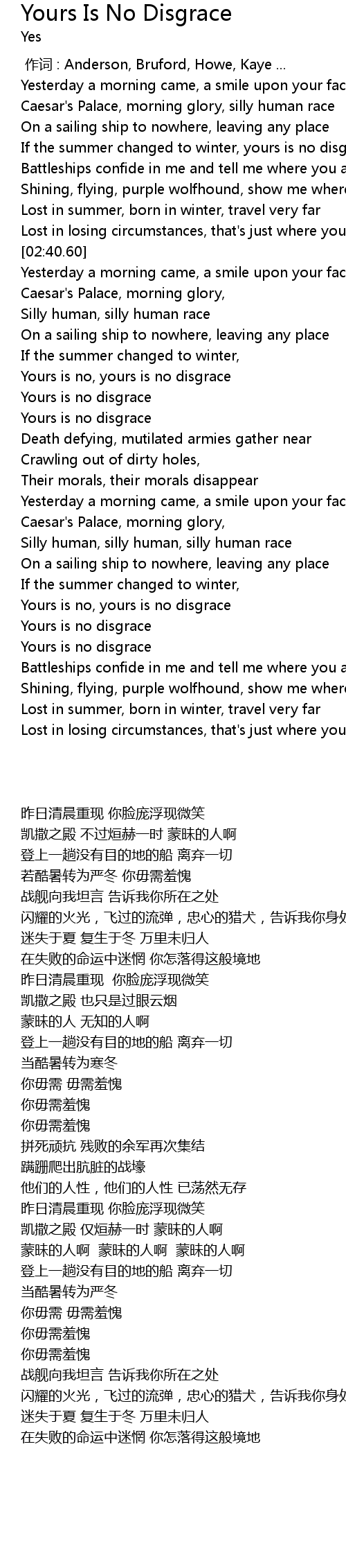 | [03:58.72] | Yours is no disgrace |