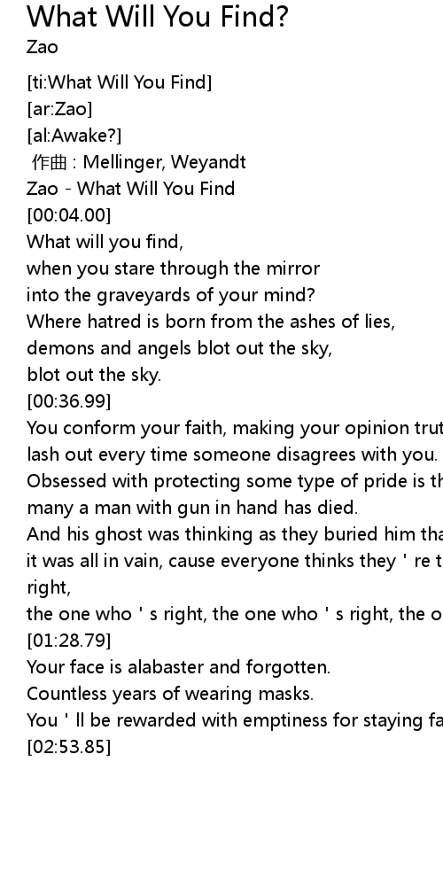 | [00:02.00] | Zao What Will You Find |