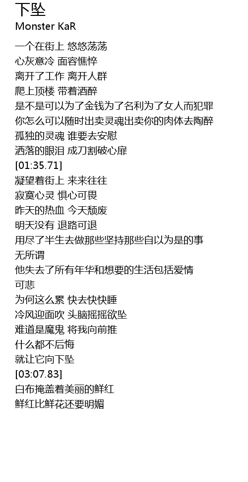 | [01:52.61] | 昨天的热血 今天颓废 |