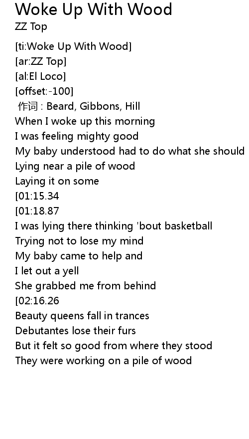 | [00:50.31][01:18.87][02:23.02] | When I, I woke up with wood |