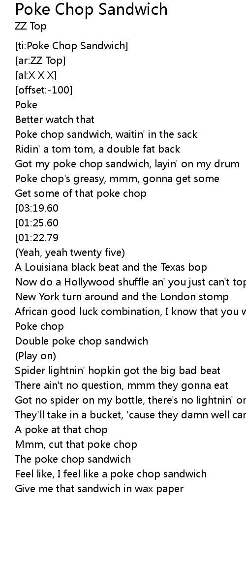 | [00:41.70][03:19.60] | Poke chop sandwich |