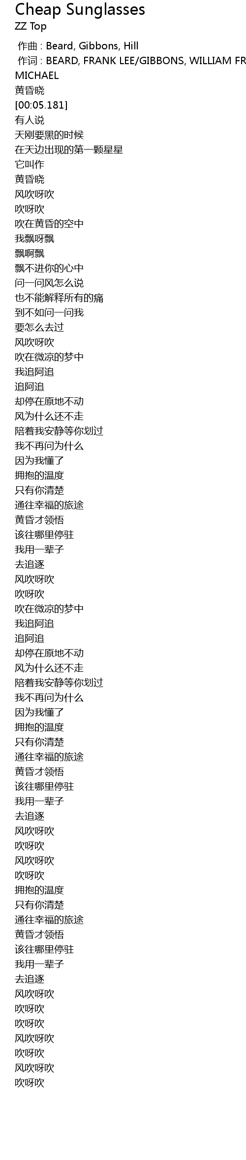 | [00:00.00] | 作曲 : Beard, Gibbons, Hill |