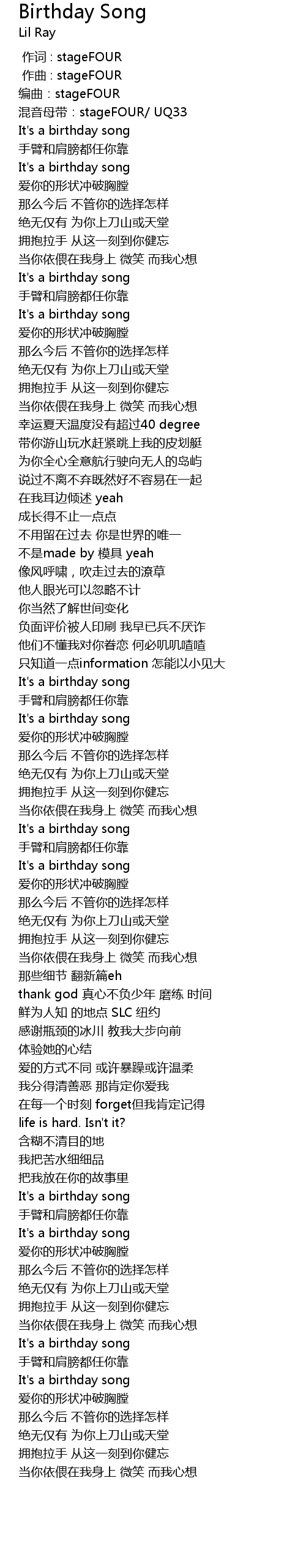 | [00:25.413] | 混音母带:stageFOUR/ UQ33 |