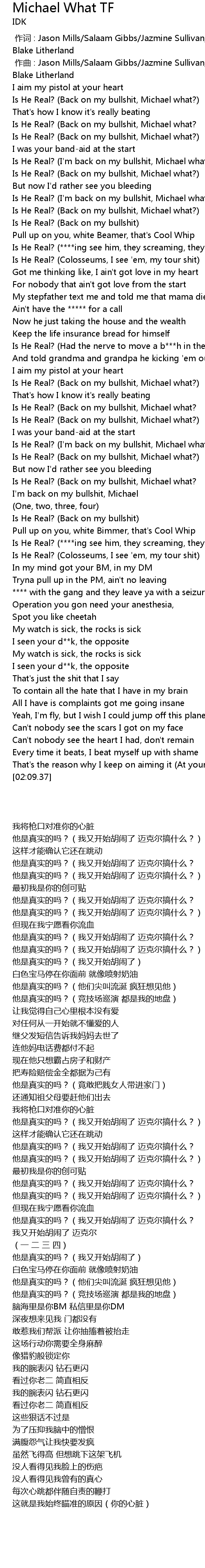 | [00:22.84] | Is He Real? Back on my bullshit, Michael what? |