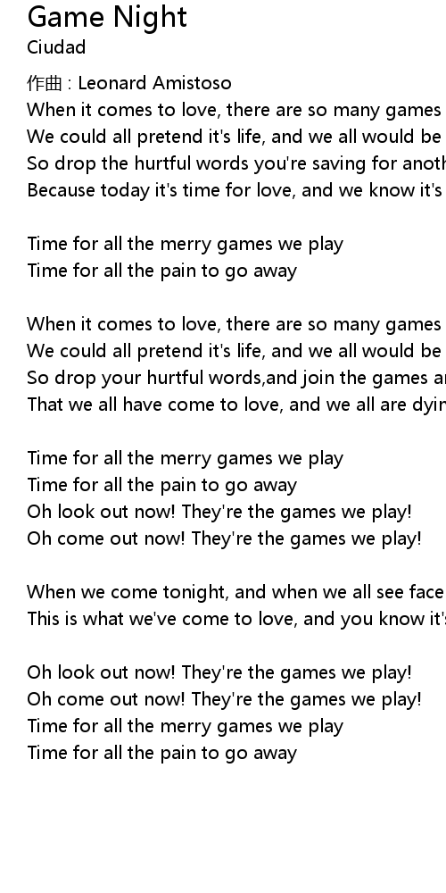 | Song | Game Night |