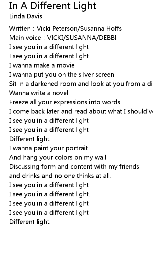 | I see you in a different light | |