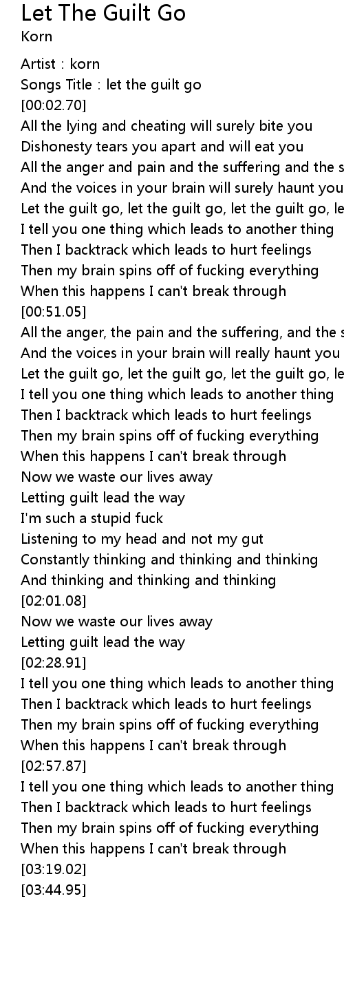 | [01:05.22] | Let the guilt go, let the guilt go, let the guilt go, let the guilt go |