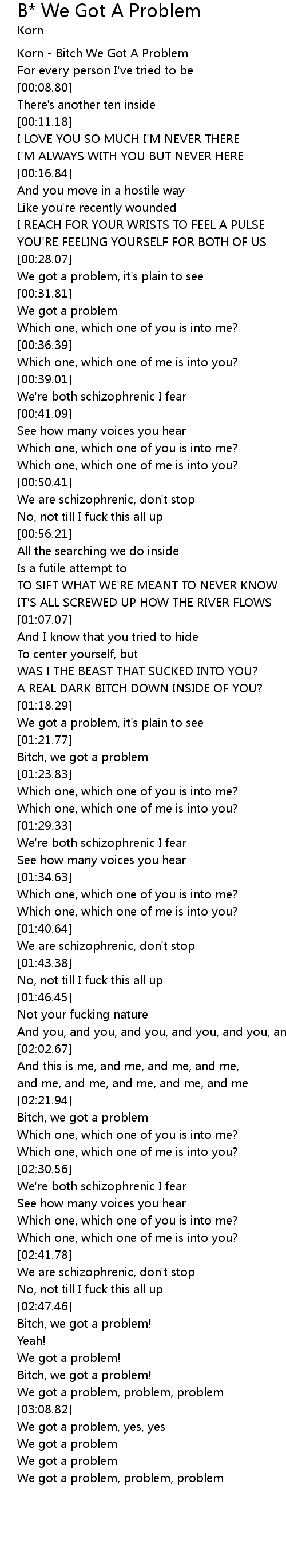 | [00:00.54] | Korn - Bitch We Got A Problem |