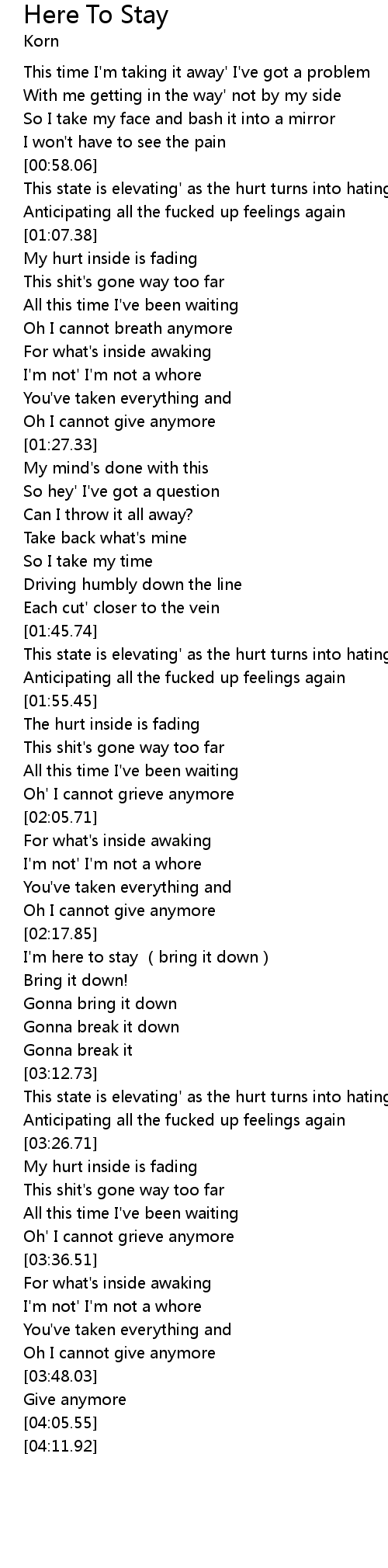 | [02:34.00] | I' m here to stay bring it down |