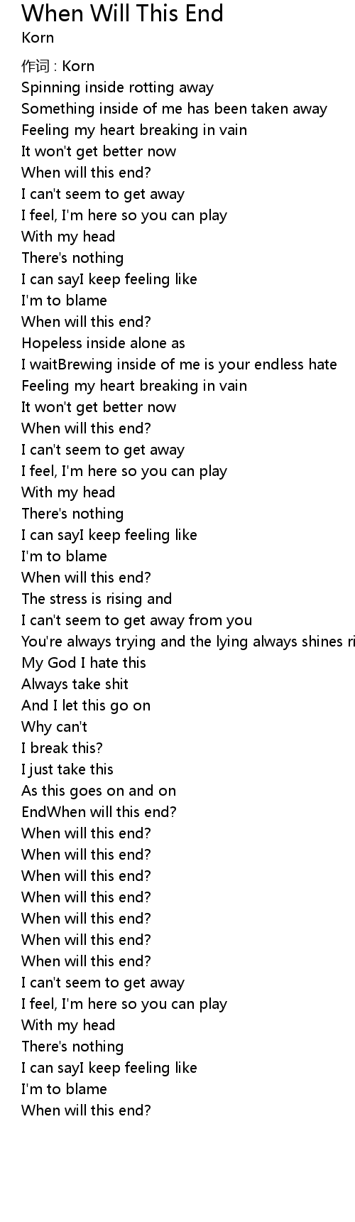 | Song | When Will This End |