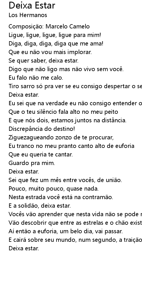 | Song | Deixa Estar |